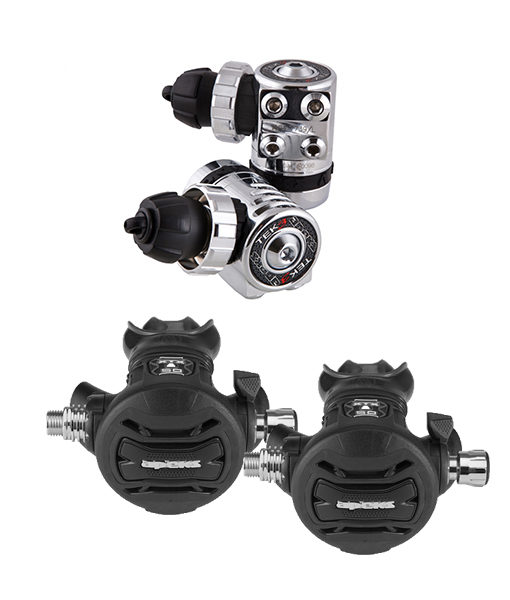 regulators. - Features an innovative Diver Changeable Exhaust system (DCE). The system gives the diver the ability to change from a small exhaust tee to a large exhaust tee.