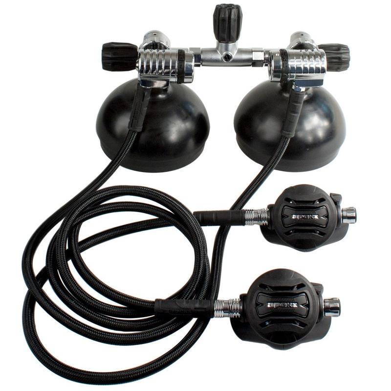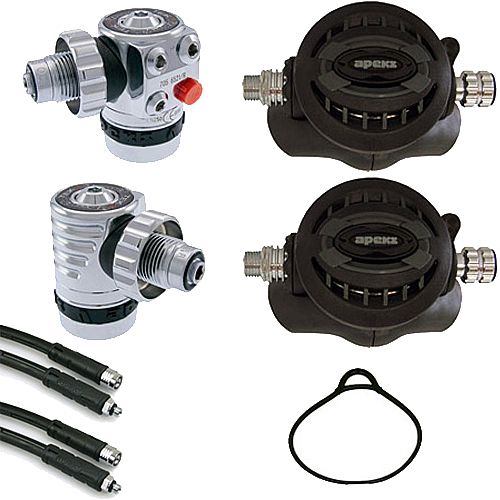 Apeks unique Tek 3 1st stages have been designed with the needs of twinset divers in mind. This full set provides everything you need for for optimised hose routing, free from snags, hose kinking and easy access to he manifold valves.
